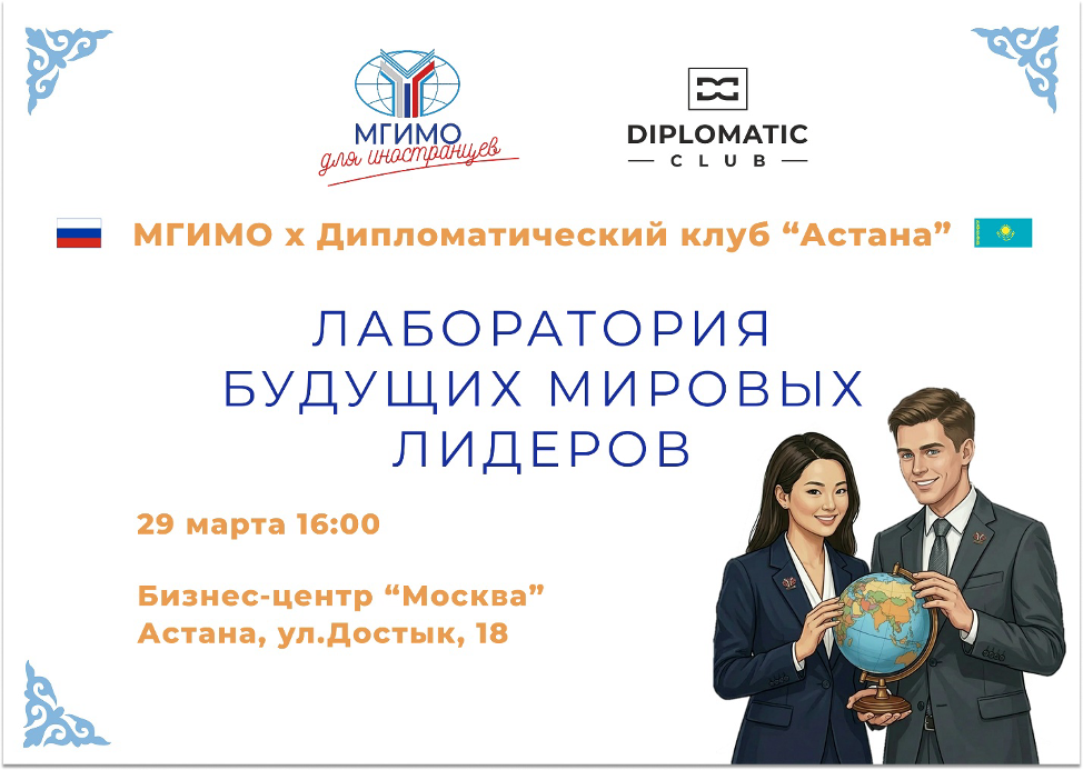 МГИМО и Дипломатический клуб «Астана» приглашают на мероприятие «Лаборатория будущих мировых лидеров»